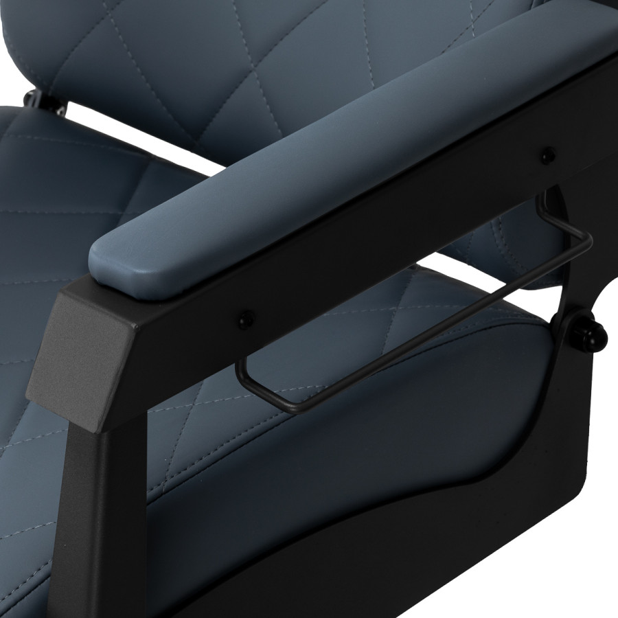 Stabilná konštrukcia zaručuje bezpečnosť a dlhodobú životnosť. Sedadlo vyplnené penou odolnou proti deformácii a čalúnenie z mäkkej syntetickej kože zaisťujú odolnosť a pohodlie. Materiály odolné voči vlhkosti sú nielen odolné, ale aj ľahko sa čistia. Grafitové čalúnenie v kombinácii s čiernym rámom dodáva stoličke moderný a profesionálny vzhľad, zatiaľ čo jej minimalistický štýl umožňuje zapadnúť do interiéru každého holičstva.