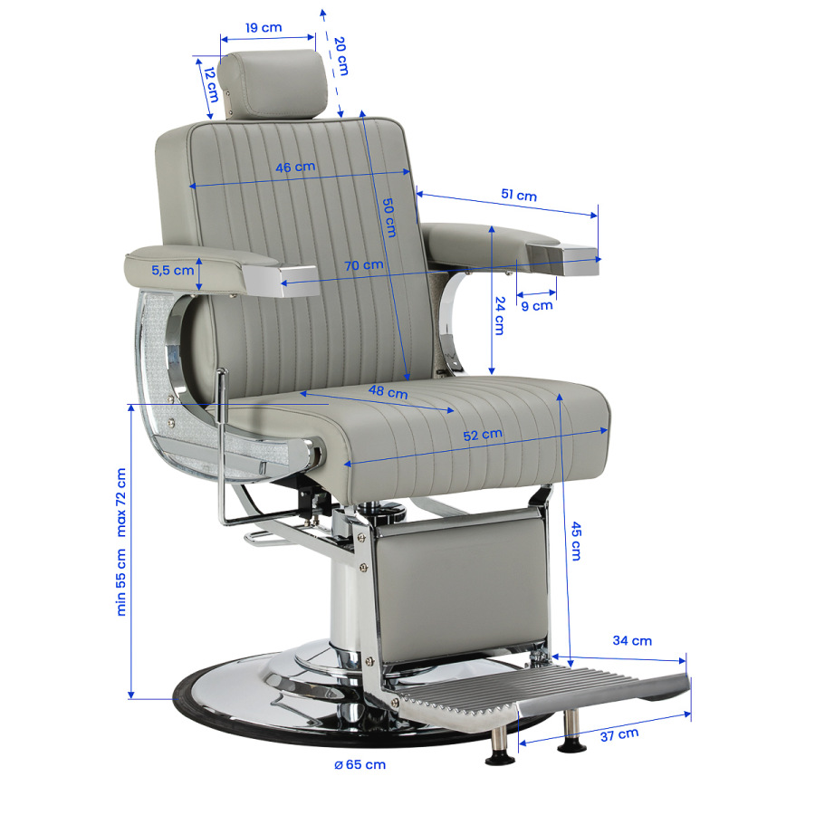 Fotel barberski Gabbiano Visionerio to funkcjonalny i stylowy mebel, wyposażony w solidny podnośnik hydrauliczny oraz regulowane oparcie i podnóżek. Szeroki zakres regulacji umożliwia łatwe dopasowanie pozycji do rodzaju wykonywanego zabiegu, co znacząco wpływa na komfort zarówno klienta, jak i osoby wykonującej usługę. Starannie wykonane detale i eleganckie wykończenie sprawiają, że fotel staje się efektownym elementem aranżacji wnętrza, łącząc estetykę z wysoką ergonomią pracy.
