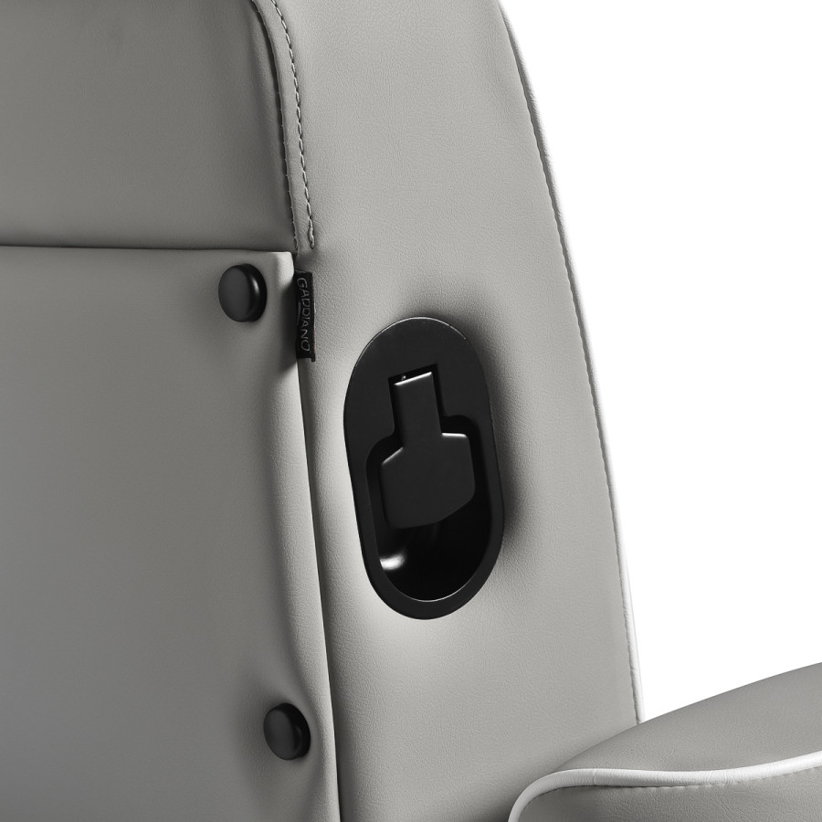 Kadernícke kreslo Gabbiano Levi spája štýl s funkčnosťou. Je vybavené masívnym hydraulickým zdvihákom, nastaviteľným operadlom, opierkou na nohy a výsuvnou opierkou hlavy a umožňuje prispôsobiť polohu podľa typu vykonávaného ošetrenia. To zaručuje maximálne pohodlie pre klienta aj pre osobu vykonávajúcu službu. Starostlivo vypracované detaily, vertikálne prešívanie čalúnenia a elegantné povrchové úpravy robia z kresla pútavý doplnok každého holičstva.
