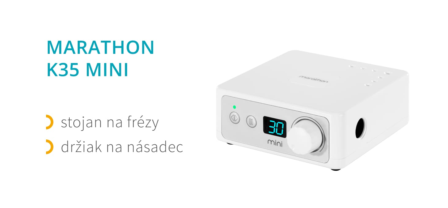 Špičková minibruska na nehty Saeyang Marathon K35 je praktické zariadenie, ktoré vám umožní dôkladne spracovať nechty a kožičku a pripraviť ich na ďalšie ošetrenie. Používanie zariadenia výrazne uľahčuje odstraňovanie zvyškov predchádzajúcej úpravy nechtov. Vďaka dobre vyváženej hlave, kompaktným rozmerom, premysleným funkciám a množstvu dostupných možností je frézka ideálna na profesionálne použitie, najmä na mobilné služby.