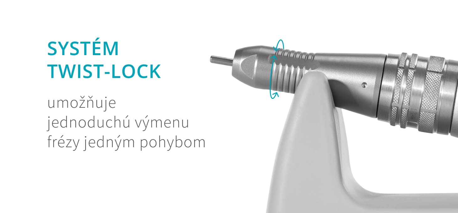Funkčná, presná hlava dokonale padne do ruky a zaručuje vysokú úroveň pohodlia. Je vybavená ľahko použiteľným systémom Twist-Lock, ktorý umožňuje rýchlu a plynulú výmenu frézy. Vďaka tomu je práca s náradím mimoriadne jednoduchá a intuitívna, čo ocenia aj náročnejší používatelia. Obrobok je vhodne vyvážený a ergonomicky tvarovaný a navyše boli znížené vibrácie hlavy, takže ani mnohohodinová práca s bruskou nadmerne neunavuje ruku.