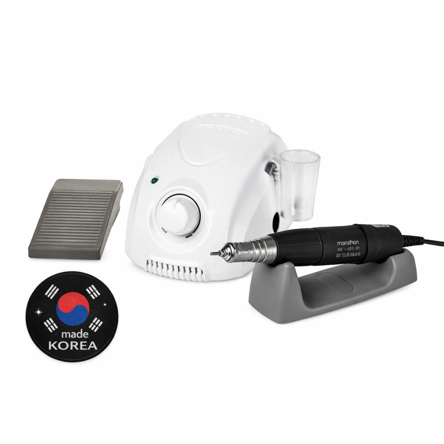 Špičková frézka Saeyang Marathon 3 Champion je kozmetológmi odporúčaný prístroj, ktorý uľahčuje precíznu prípravu nechtovej kožičky a nechtov a odstránenie zvyškov predchádzajúceho stylingu, čo výrazne zlepšuje ich prípravu na ďalšie úpravy. Vďaka dobrému vyváženiu hlavy a premysleným funkciám je frézka ideálna pre profesionálne aj domáce použitie