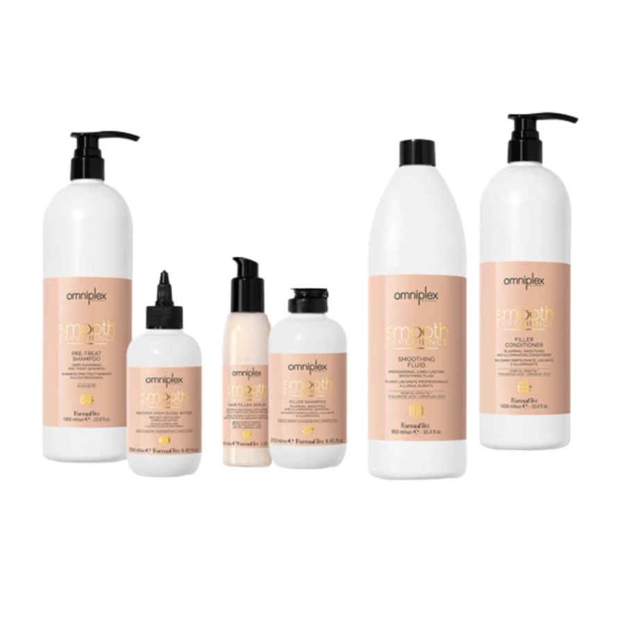 Celý systém Smooth Experience využíva synergiu rekonštrukcie (Omniplex) + vyhladenia (Keratín + Hyalurón) + ochrany (Polyméry), vďaka čomu poskytuje vlasom dokonalý “Mirror-Smooth Effect” bez poškodenia.