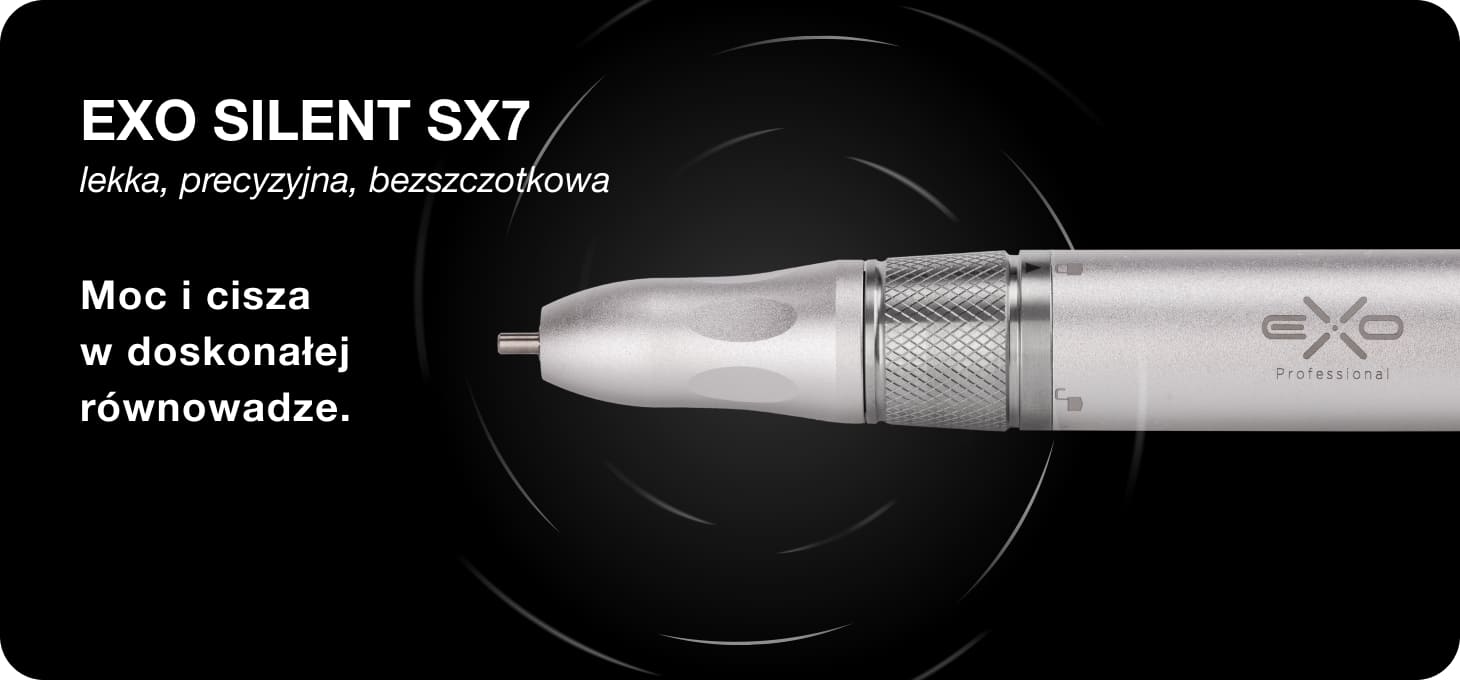 Bezszczotkowa głowica EXO SILENT SX7 łączy wysoką moc z wyjątkowo cichą pracą i minimalnymi wibracjami. Zastosowana technologia bezszczotkowa zwiększa żywotność urządzenia oraz gwarantuje płynność działania nawet przy długotrwałym obciążeniu.