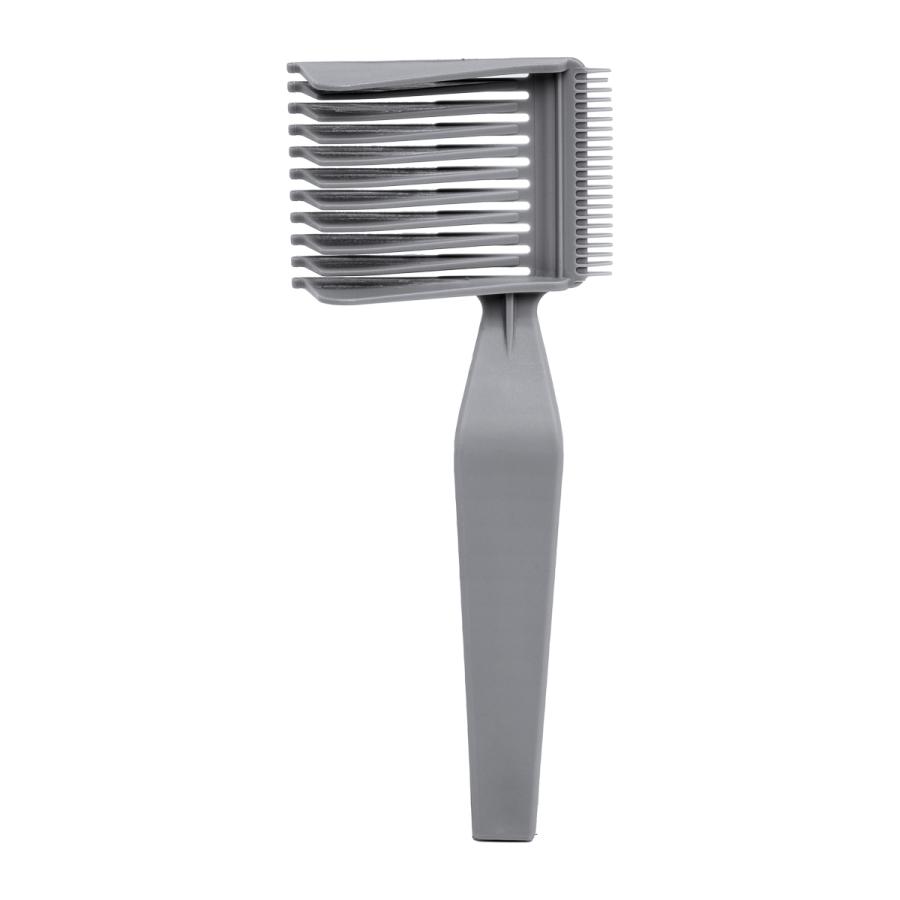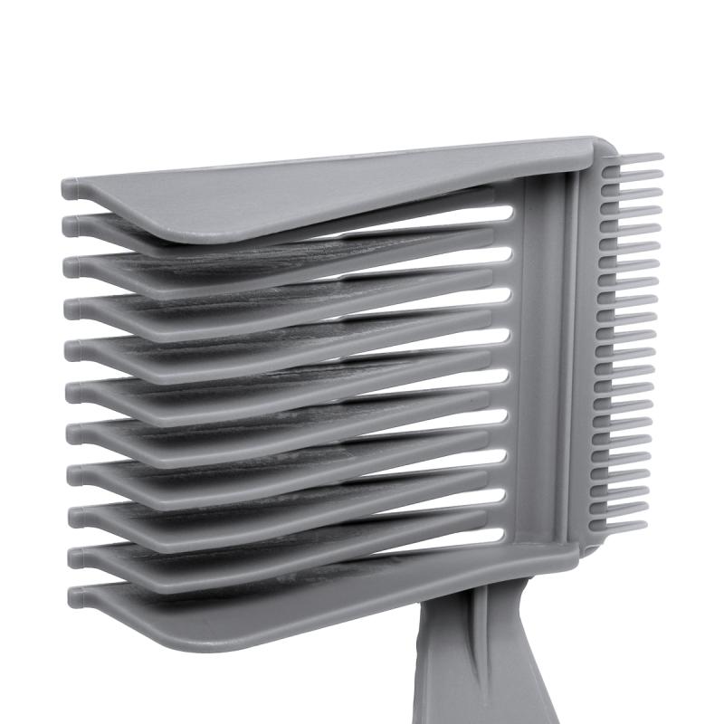 Grzebień do cieniowania to praktyczne narzędzie, które zostało starannie zaprojektowane do precyzyjnych i skomplikowanych cięć, gwarantując naturalny efekt cieniowania. Ergonomiczny kształt i precyzyjna konstrukcja umożliwiają płynne przejścia oraz dokładne stopniowanie długości włosów, co jest idealne do tworzenia modnych fryzur typu fade. Produkt sprawdzi się zarówno u profesjonalistów dążących do perfekcji, jak i osób ceniących wysoką jakość oraz precyzję w domowej pielęgnacji włosów. Praktyczne narzędzie pomocnicze doskonale sprawdzi się przy strzyżeniu różnych rodzajów włosów i stylizacji fryzur, zapewniając precyzyjne i efektywne cięcie. Grzebień wykonany z trwałego tworzywa sztucznego jest łatwy w czyszczeniu, co czyni go niezastąpionym narzędziem dla każdego, kto dąży do perfekcji w strzyżeniu.