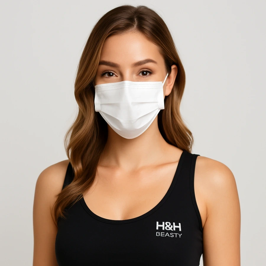 Ide o SPUNLACE zo 100% viskózy 55 g/m2 a BIO film dáva 25 my priedušnosť. Certifikovaný materiál 1. triedy. Vyrobené s 20 cm dlhými gumičkami a s drôtikom obaleným biorozložiteľnou látkou, extra flexibilný, zaručuje perfektné prekrytie a znižuje zahmlievanie okuliarov. Vysoká filtračná schopnosť, bez latexu a bez čiastočiek skla.