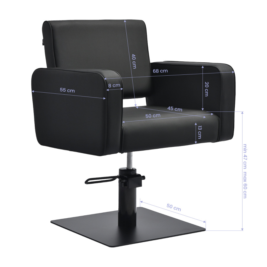 Odolný hydraulický zdvihák umožňuje plynulé nastavenie výšky sedadla od 47 do 60 cm - aj keď klient sedí v kresle. Vďaka tomu je práca ergonomickejšia a polohu možno ľahko nastaviť tak, aby vyhovovala výške klienta aj kaderníka. Pohodlné operadlo poskytuje stabilnú oporu chrbta a uľahčuje pohodlnú polohu, čo je dôležité najmä počas dlhých ošetrení, čím sa zvyšuje pohodlie a spokojnosť klienta.
