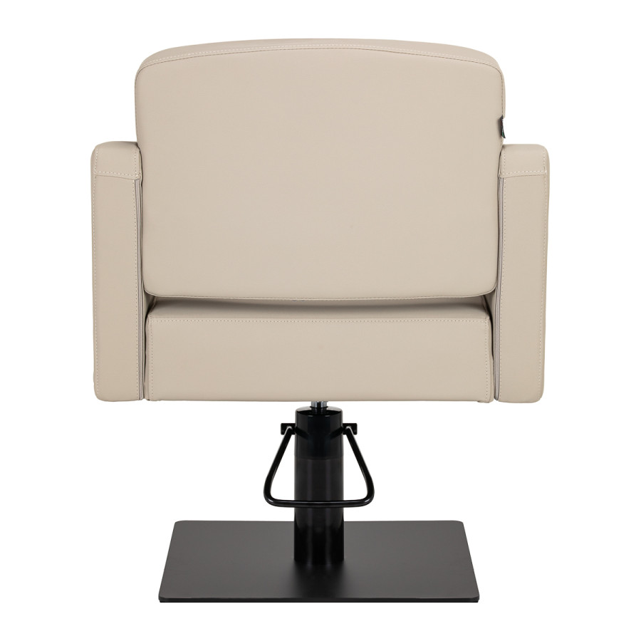 Kadernícke kreslo Gabbiano Elda spája minimalistický dizajn s funkčnosťou a každodenným komfortom. Zjednodušené línie mu dodávajú ľahký a moderný charakter, zatiaľ čo stabilná štvorcová základňa v matnej čiernej farbe ešte viac zdôrazňuje jeho štýl. Mäkká penová výplň v kombinácii s na dotyk príjemnou syntetickou kožou v sivo-béžových odtieňoch zaručuje pohodlie aj počas dlhých procedúr. Starostlivo vybrané materiály zaručujú trvanlivosť, odolnosť voči vlhkosti a jednoduché čistenie. Kreslo sa dokonale hodí do moderných aj klasických interiérov a zdôrazňuje profesionálny charakter salónu.