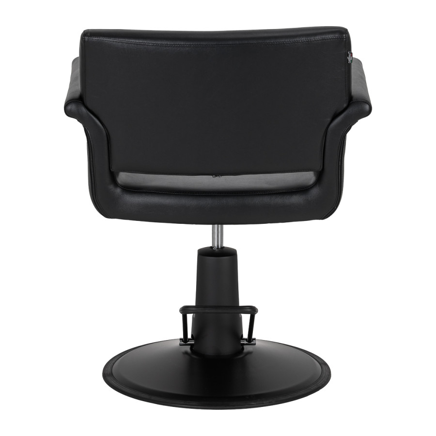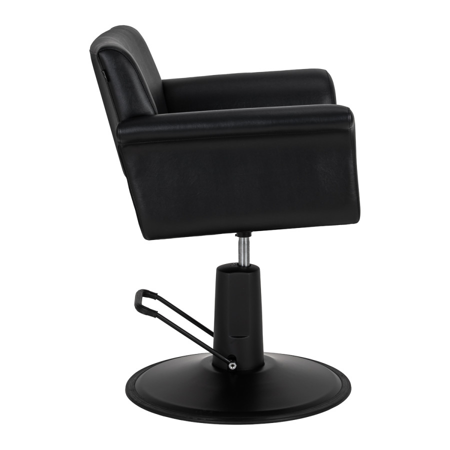 Kadernícke kreslo Gabbiano Lucca spája modernú jednoduchosť s pohodlím každodenného používania. Okrúhla čierna základňa zabezpečuje stabilitu, zatiaľ čo čalúnenie zo syntetickej kože v odtieňoch čiernej farby zaručuje pohodlie počas ošetrenia. Vďaka odolným materiálom odolným voči vlhkosti je tento model nielen pohodlný, ale aj výnimočne ľahko udržiavateľný, pričom si zachováva estetický vzhľad po celé roky. Výrazné navonok zahnuté podrúčky dodávajú kreslu elegantný vzhľad a zároveň podporujú pohodlnú polohu klienta. Tento všestranný model sa dokonale hodí do moderných aj klasickejších interiérov a podčiarkne profesionálny štýl salónu.