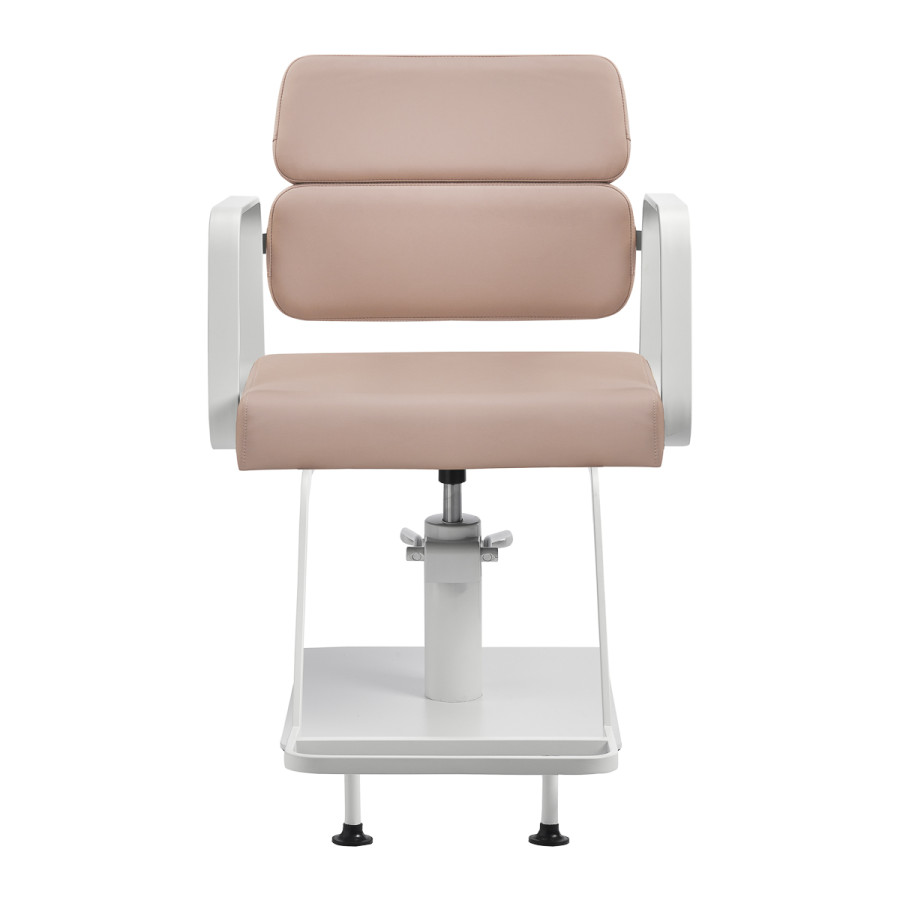 Výplň z odolnej peny odolnej voči deformáciám a čalúnenie z na dotyk príjemnej syntetickej kože zaručujú odolnosť nábytku a jeho pohodlné používanie po dlhú dobu. Vďaka nim je tiež odolný voči vlhkosti, trvácny a ľahko sa čistí. Poťah v béžových odtieňoch mu dodáva jedinečný charakter. Zariadenie sa vyznačuje moderným dizajnom, vďaka ktorému kreslo vyzerá skvele v mnohých profesionálnych salónoch.