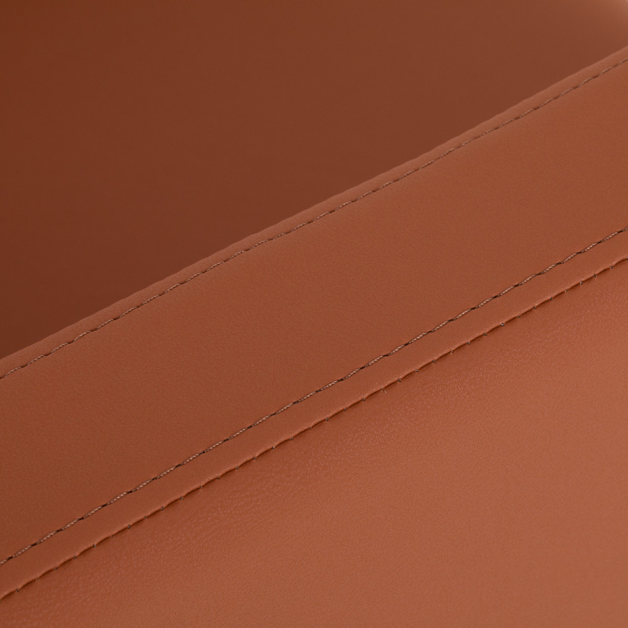 Zaoblené línie stoličky dodávajú ľahkosť a modernú estetiku, zatiaľ čo stabilná, štvorcová základňa v matnej čiernej farbe zdôrazňuje jej štýlový vzhľad. Príjemná na dotyk syntetická koža v odtieňoch hnedej farby zaručuje pohodlie aj počas dlhších procedúr a zároveň garantuje odolnosť, odolnosť voči vlhkosti a ľahké čistenie. Stolička sa hodí do moderných aj klasických interiérov a zdôrazňuje profesionálny image salónu.