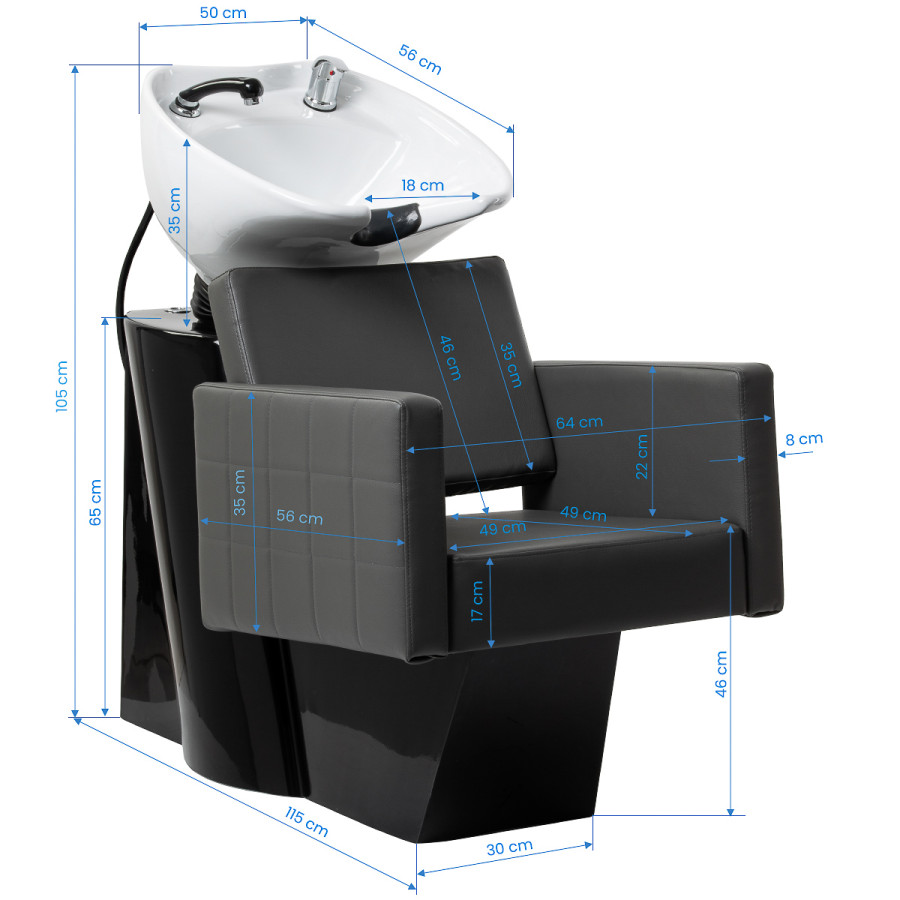Štýlová kadernícka umývacia stanica Ankara s geometricky tvarovaným kreslom podporuje efektívnu starostlivosť o vlasy a umývanie. Bola navrhnutá na funkčné vybavenie kaderníckych salónov. Integrovaný dizajn poskytuje pohodlie kaderníkovi aj klientovi a starostlivé spracovanie s výrazným bočným prešívaním z nej robí ozdobu každého interiéru.