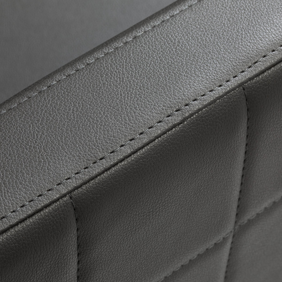 Ergonomicky tvarované kreslo vyplnené odolnou penou odolnou voči deformáciám zabezpečuje vysoký komfort pre klienta aj osobu vykonávajúcu ošetrenie. Čalúnené podrúčky s ozdobným bočným prešívaním umožňujú prirodzenú polohu rúk a ramien, čím podporujú správne držanie tela pri sedení. Konštrukcia kresla bola navrhnutá tak, aby poskytovala pohodlie pri rôznych ošetreniach, a správne naklonené operadlo podporuje chrbticu a zvyšuje komfort návštev. Čalúnenie z kvalitnej syntetickej kože v odtieňoch sivej farby sa vyznačuje elegantným vzhľadom, odolnosťou a jednoduchým čistením. Celok vytvára moderný, estetický kus nábytku, ktorý dokonale zapadá do interiéru profesionálneho salónu a dodáva mu jedinečný charakter.