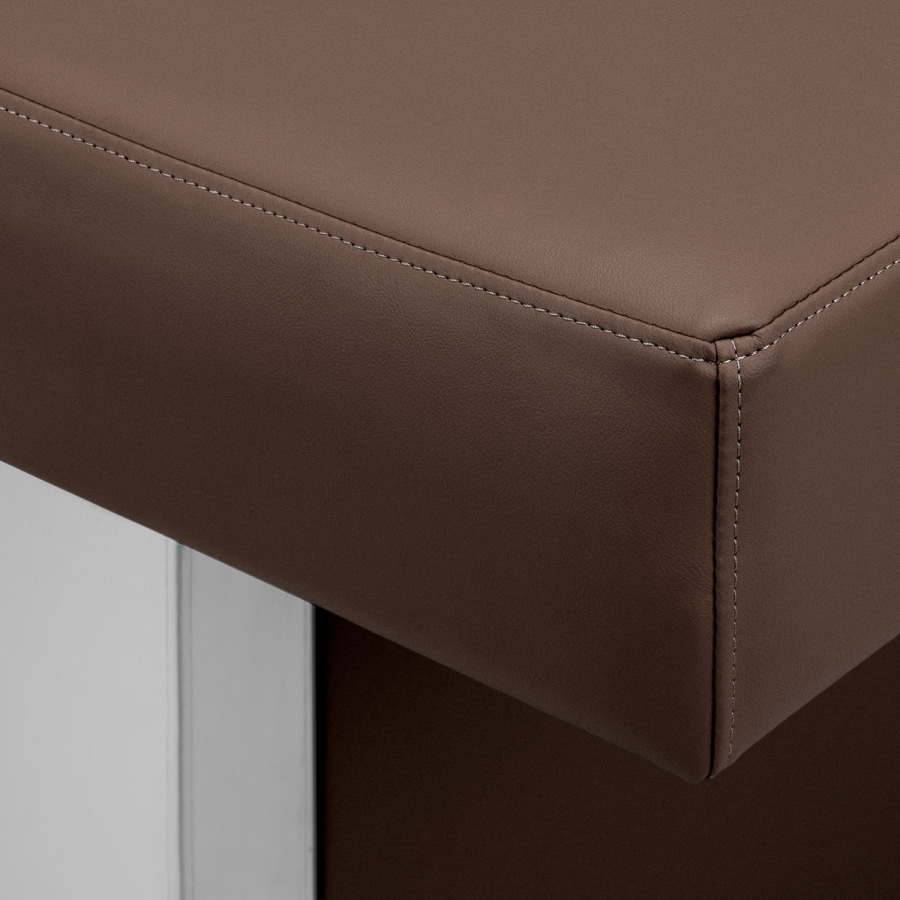 Leżanka Head Spa 017 to połączenie funkcjonalności i nowoczesnego designu. Wyposażona w solidną ramę ze stali nierdzewnej, gwarantuje stabilność i wytrzymałość. Ergonomicznie wyprofilowana leżanka pokryta jest miękką skórą syntetyczną w odcieniach brązu, zapewniając maksymalny komfort podczas zabiegów. Dodatkowo, przestrzeń pod leżanką pozwala na wygodne przechowywanie kosmetyków i akcesoriów, co sprawia, że jest to doskonały wybór do profesjonalnych salonów beauty & wellness.