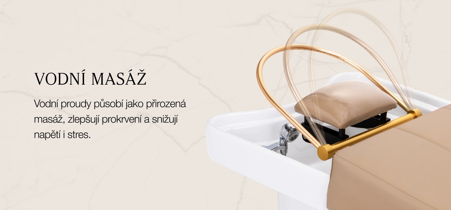 Zlatý uhlovo nastaviteľný oblúk pre masáž Waterfall Head Spa je inovatívnym riešením komplexnej starostlivosti o pokožku hlavy. Vodné trysky pôsobia ako prirodzená masáž, zlepšujú krvný obeh a znižujú napätie a stres. Presne riadený prúd vody podporuje regeneráciu vlasov a intenzívne hydratuje pokožku. Vodopád s nastaviteľným uhlom poskytuje hĺbkové čistenie pokožky hlavy a relaxáciu, čím poskytuje úľavu od ťažkostí, ako sú bolesti hlavy a stuhnutosť šije. Vďaka inteligentnému systému s uzavretým okruhom oblúk čerpá vodu z misky a opätovne ju využíva, čím poskytuje neprerušovanú vodnú masáž. Ide o kombináciu technológie a relaxácie, ktorá podporuje zdravie a pohodu vlasov.