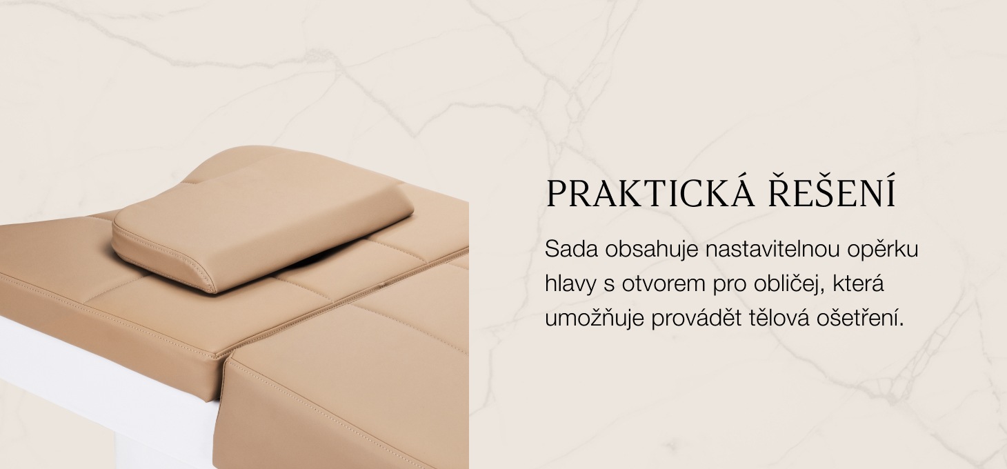 Nastaviteľná opierka hlavy s predĺžením a nastavením uhla zaručuje dokonalé prispôsobenie používateľovi, čím sa zvyšuje pohodlie počas ošetrenia. Súčasťou balenia sú aj ergonomické vankúše vrátane opierky hlavy s otvorom na tvár, ktorá umožňuje vykonávať nielen procedúry starostlivosti o pokožku hlavy, ale aj masáže a rôzne ošetrenia tela a tváre. Vďaka týmto praktickým riešeniam sa pohovka stáva všestranným zariadením pre salóny krásy a wellness, ktoré zaručuje pohodlie a účinnosť každej terapie.