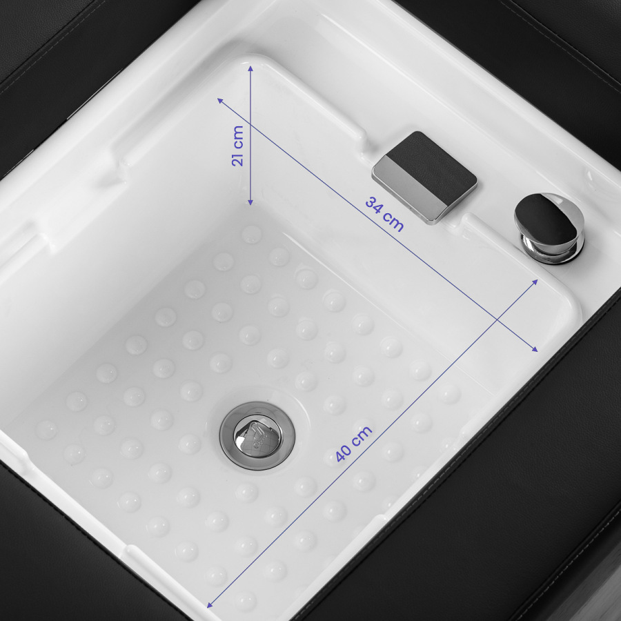 Umývací box je vybavený hlbokou keramickou misou v bielom prevedení, ktorá minimalizuje rozstrekovanie vody počas procedúr.