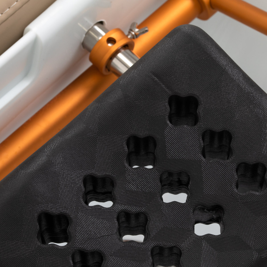 Stabilitu zariadenia zabezpečuje pevný rám z nehrdzavejúcej ocele, ktorý je doplnený kvalitným čalúnením zo syntetickej kože.