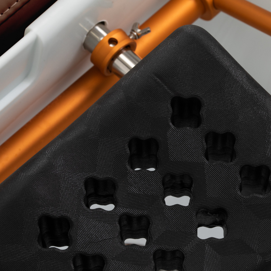 Prívod vody je umiestnený vo vnútri základne za čalúnením, čo pomáha elegantne ukryť inštaláciu a zachovať čistý vzhľad pracoviska.