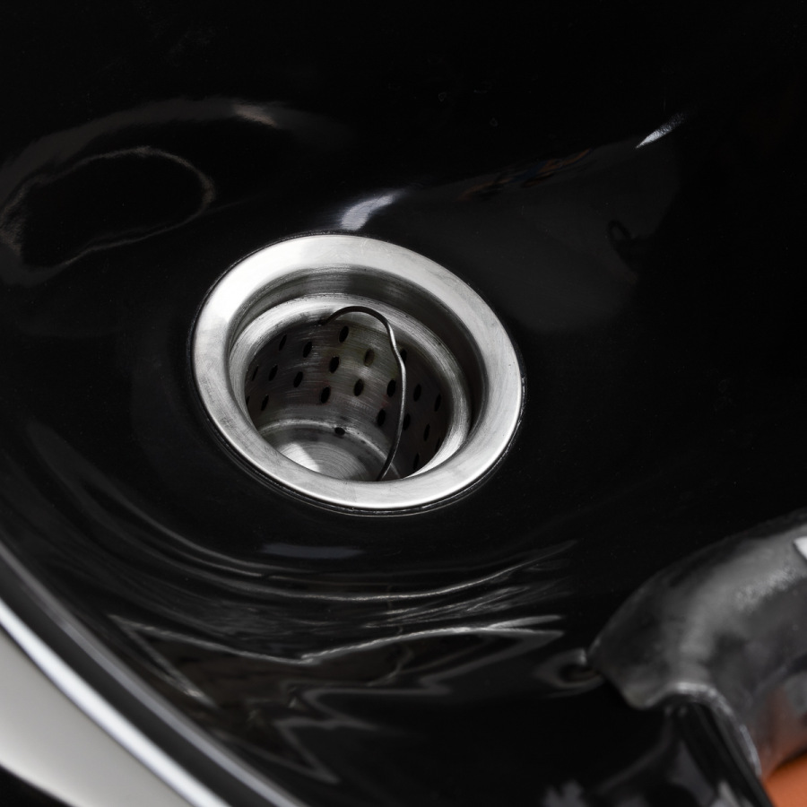 Hlboká keramická miska v čiernych odtieňoch minimalizuje rozstrekovanie vody a kozmetických prípravkov počas procedúr. Nastaviteľný uhol misy umožňuje presné prispôsobenie potrebám zákazníka. Je vyrobená z odolného materiálu, ktorý je odolný voči sfarbeniu, poškriabaniu a chemikáliám, a jej hladký povrch uľahčuje udržiavanie čistoty. Ergonomicky tvarovaný golier poskytuje pohodlnú oporu hlavy a čierny plastový kryt eliminuje pocit chladu pri kontakte s keramikou.