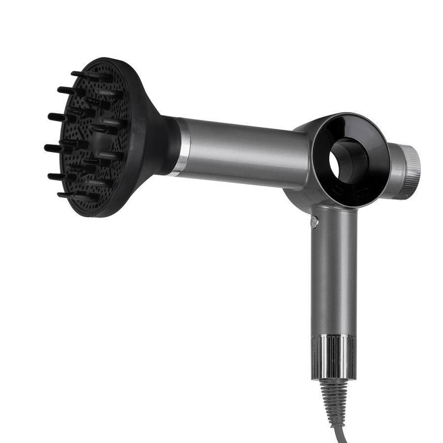 Silnik o długiej żywotności zapewnia stabilną pracę urządzenia, wysoką odporność na przegrzanie oraz niezawodność przez lata. Prędkość 120 000 obr./min gwarantuje szybkie suszenie i skuteczną stylizację, przy jednoczesnym zachowaniu wyjątkowo cichej pracy na poziomie 65 dB. Moc do 2200 W oraz przepływ powietrza do 28,5 m/s umożliwiają szybkie suszenie nawet wyjątkowo gęstych i długich włosów.