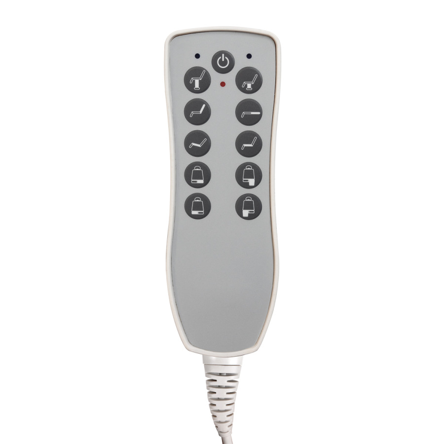 Ovládanie pomocou káblového diaľkového ovládača umožňuje presné nastavenie kresla v piatich rovinách: nastavenie výšky, uhla operadla, polohovania oboch častí podnožky a kolísky. Tento rozsah nastavenia umožňuje prispôsobiť polohu typu vykonávaného ošetrenia - z hľadiska pohodlia klienta aj odbornej ergonómie. Na uľahčenie používania možno diaľkové ovládanie zavesiť na rukoväte umiestnené na oboch stranách sedadla.