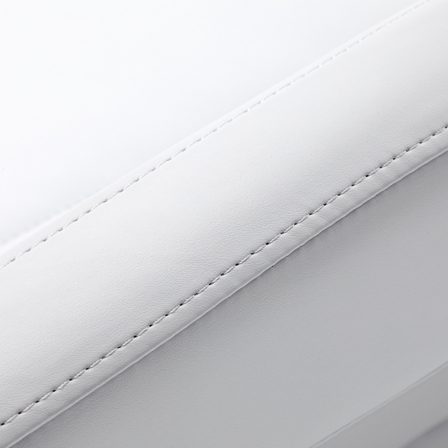 Robustná konštrukcia kresla zaručuje stabilitu a odolnosť pri každodennom používaní. Sedadlo je vyplnené penou vhodne zvolenej tvrdosti, ktorá zaručuje pohodlie aj počas dlhodobých ošetrení. Čalúnenie z vysokokvalitnej, na dotyk príjemnej imitácie kože v odtieňoch bielej farby dodáva celému kreslu profesionálny vzhľad a zároveň je odolné voči vlhkosti a ľahko sa čistí. Odolná základňa zaručuje stabilitu, zatiaľ čo precízne povrchové úpravy zdôrazňujú moderný charakter kresla a zvyšujú ergonómiu sedadla.