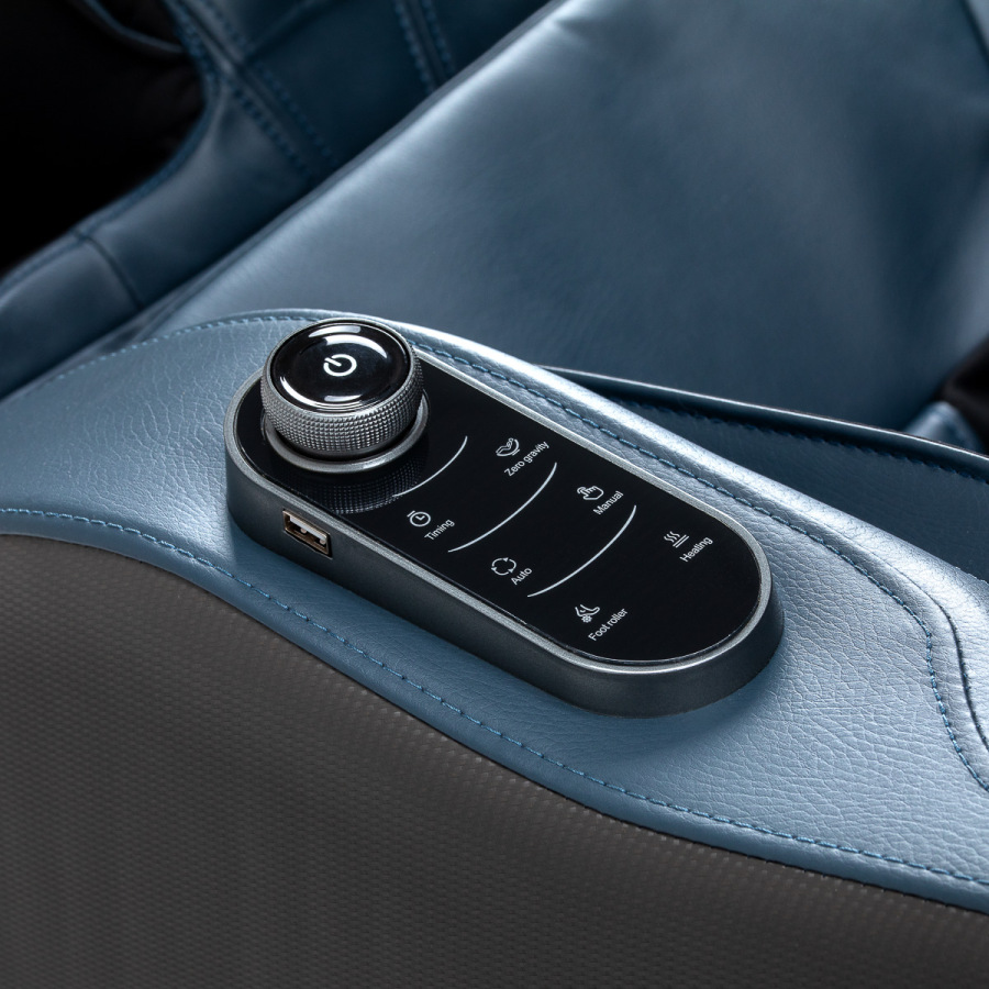 Pre väčšie pohodlie je stolička vybavená dodatočnou sadou ovládacích tlačidiel umiestnených na ľavom podrúčniku. Vstavané praktické diaľkové ovládanie poskytuje rýchly prístup k najdôležitejším funkciám bez nutnosti siahať po hlavnom paneli. To umožňuje používateľovi ľahko zmeniť typ masáže, spustiť masáž nôh, aktivovať funkciu vyhrievania a funkciu Zero Gravity, čo umožňuje plnú kontrolu nad komfortom a intenzitou relaxácie kedykoľvek.