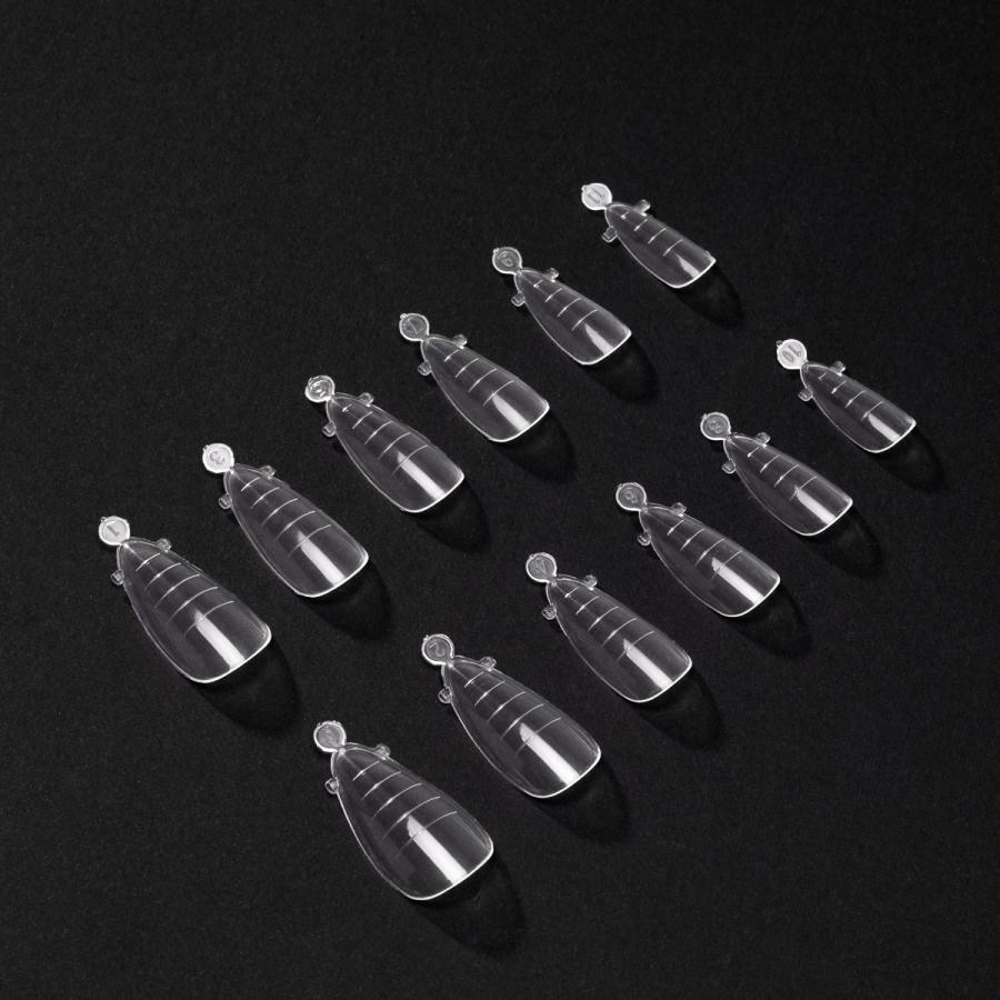 Vrchné formy v tvare mandlí vynikajú výnimočnou pružnosťou a odolnosťou, vďaka čomu môžete pohodlne pracovať bez obáv z ich poškodenia. Pomocné línie uľahčujú dodanie požadovanej dĺžky nechtov a priehľadný materiál zabezpečuje účinné vytvrdzovanie v UV/LED lampe. Vďaka 12 veľkostiam sa formy dokonale prispôsobia prirodzenej nechtovej platničke, čo uľahčuje dosiahnutie dokonalého efektu.