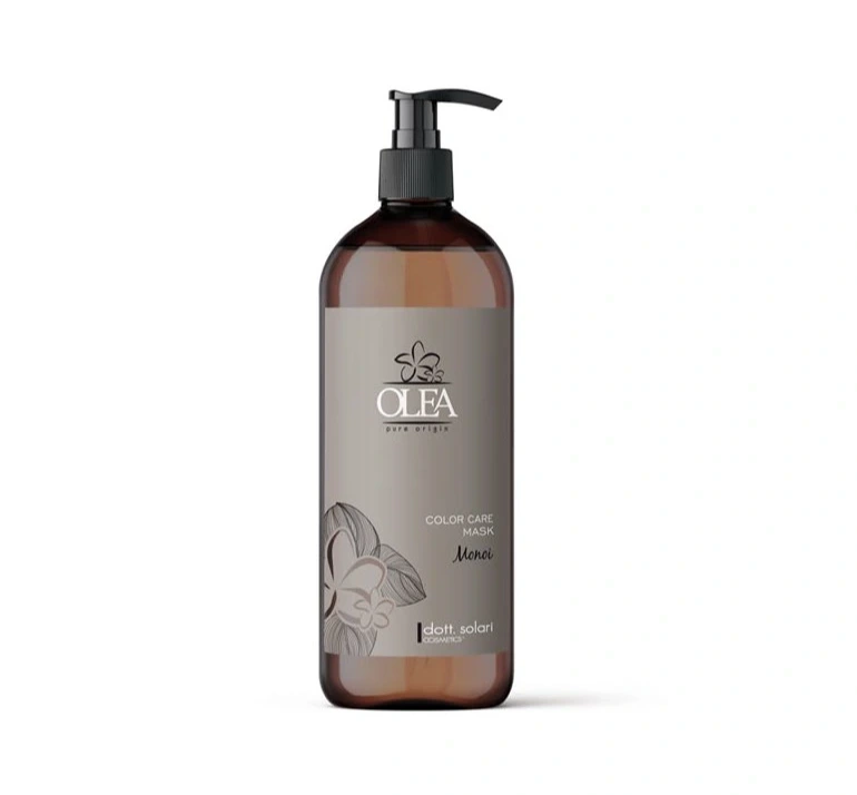 OLEA Monoi Color Care Mask 1000 ml je intenzívna regeneračná maska určená pre farbené, odfarbené a chemicky ošetrené vlasy. Vďaka zloženiu obohatenému o olej Monoi z Tahiti poskytuje hĺbkovú výživu, hydratáciu a chráni farbu pred vyblednutím. Vlasy sú po použití hebké, lesklé a ľahko sa rozčesávajú.