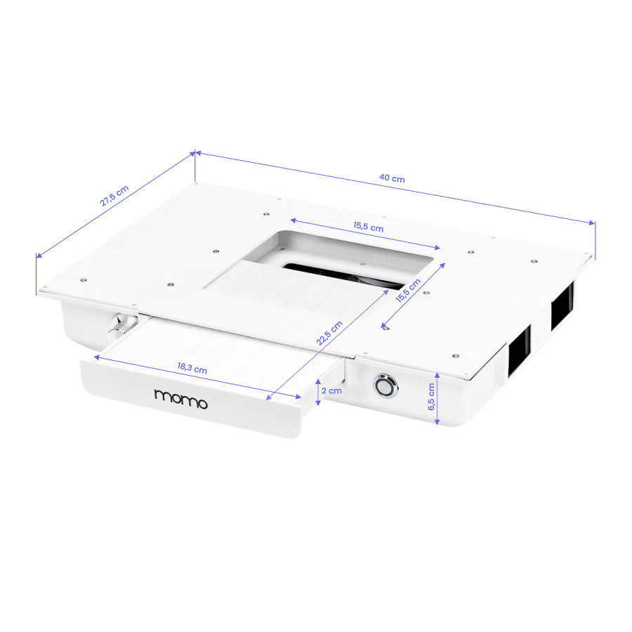 Kazetový odsávač prachu Momo J-02 zabudovaný do pultu výrazne zvyšuje komfort a hygienu, pretože účinne odstraňuje prach vznikajúci počas kozmetických ošetrení, ako je napríklad manikúra. Vďaka tomuto zariadeniu zostáva vzduch v salóne čistý a pracovná plocha bez znečistenia, čo zvyšuje bezpečnosť kozmetičky aj klientov. Pohlcovač prachu sa ľahko používa a udržiava, čo ešte viac zvyšuje jeho funkčnosť. Pravidelné čistenie a výmena filtra zabezpečujú trvalo vysokú účinnosť absorpcie. Je možné zakúpiť ďalšie náhradné filtre (SKU 123581). V našom obchode je k dispozícii aj filter s aktívnym uhlím (SKU 123582), ktorý účinne odstraňuje alergény a mikroorganizmy, čím zvyšuje úroveň hygieny v obývačke.