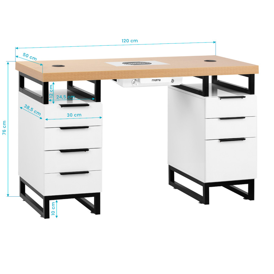 Kozmetický stolík Momo L02 s integrovaným pohlcovačom prachu je moderné riešenie, ktoré spája industriálny štýl s maximálnou funkčnosťou. Vďaka stabilnej konštrukcii, starostlivo vybraným materiálom a pozornosti venovanej detailom tento model nielen skvele vyzerá, ale predovšetkým spĺňa potreby profesionálov. Ideálny na každodennú prácu v salóne - poskytuje pohodlie, ergonómiu a komfort pre kaderníka aj klientov.