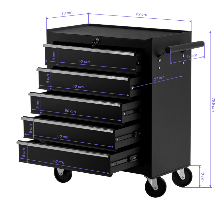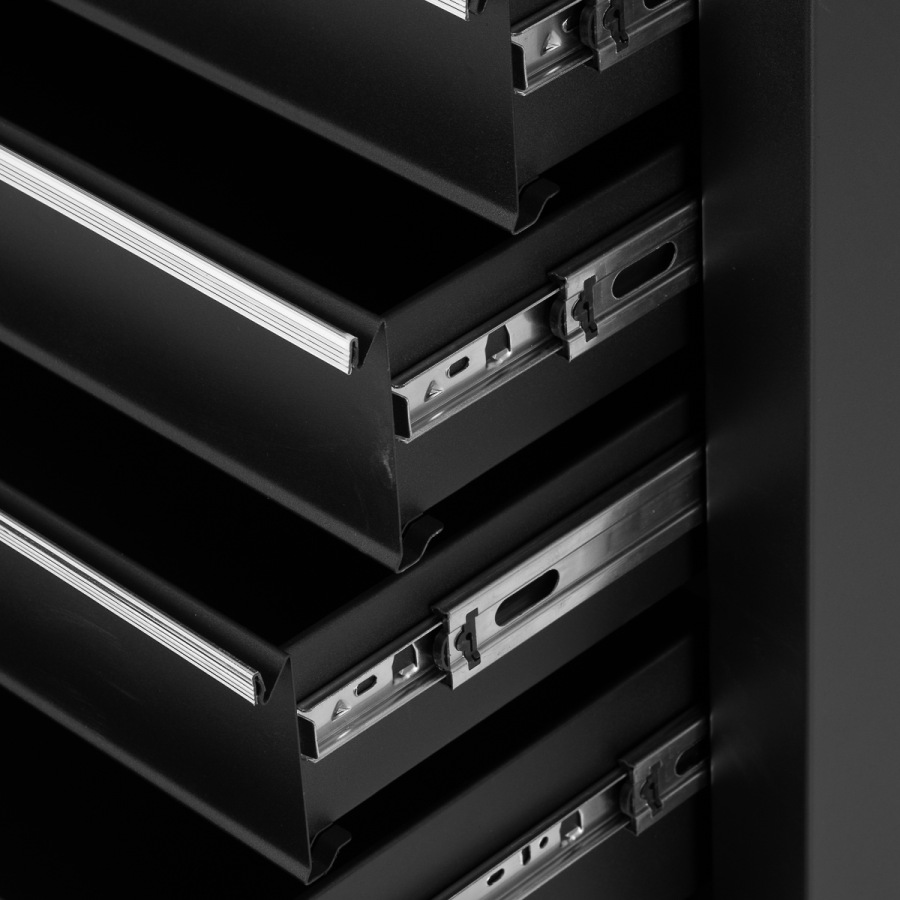 Zámok na kľúč chráni zásuvky pred samovoľným vysunutím a umožňuje bezpečné uloženie citlivejších nástrojov, dokumentácie alebo materiálov vyžadujúcich zvýšenú opatrnosť.