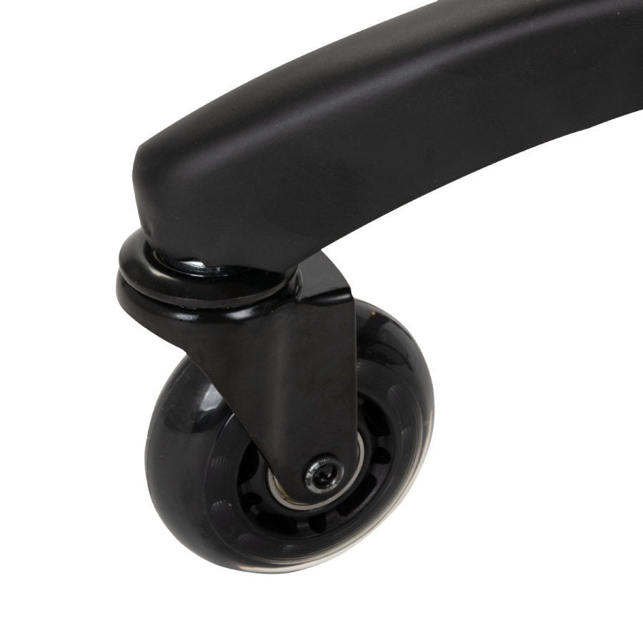 Regulacja wysokości siedziska w zakresie 56-76 cm umożliwia dopasowanie pozycji do indywidualnych potrzeb specjalisty podczas wykonywania usług. Oparcie wspiera kręgosłup, zapewniając komfort nawet w trakcie długotrwałej pracy. Mechanizm pełnego obrotu zwiększa swobodę ruchów, co przekłada się na większą wygodę i efektywność pracy. Mobilność zapewniają kółka Roll Speed z żelaznym rdzeniem i powłoką z poliuretanu (PU), które łączą płynność ruchu z wyjątkową odpornością na zużycie. Zastosowanie łożysk klasy ABEC-7 sprawia, że taboret porusza się łatwo, co znacząco ułatwia manewrowanie.