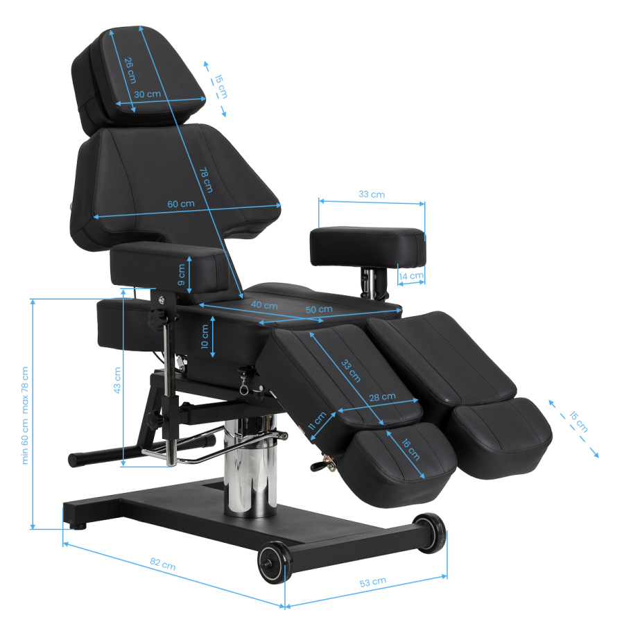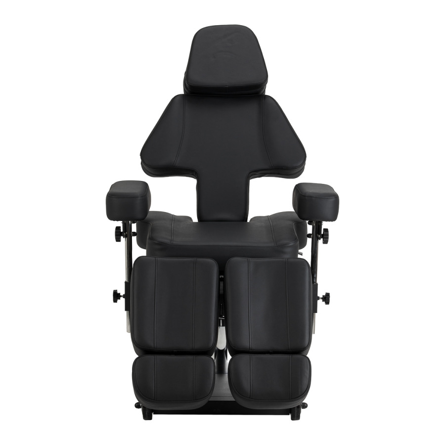 Tetovacie kreslo Pro Ink 605 je navrhnuté špeciálne pre potreby profesionálnych tetovacích štúdií. Pevná a stabilná konštrukcia v kombinácii s ergonomicky tvarovanou výplňou z peny odolnej voči deformáciám zabezpečuje pohodlie aj počas niekoľkohodinových sedení.