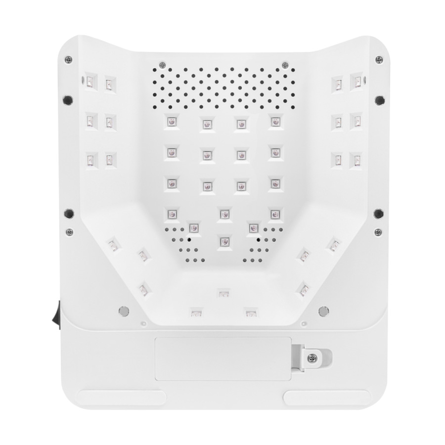 Puzdro lampy je vyrobené z odolného plastu a kombinuje moderný minimalistický dizajn s praktickým použitím. Lampa sa ľahko čistí, je odolná voči poškodeniu a má rozmery, ktoré umožňujú pohodlné umiestnenie celej ruky alebo nohy, čím zabezpečuje rýchle a rovnomerné vytvrdzovanie stylingu. Odnímateľné magnetické dno uľahčuje pedikúru , ako aj čistenie a dezinfekciu zariadenia, čím zvyšuje komfort a hygienu v salóne.